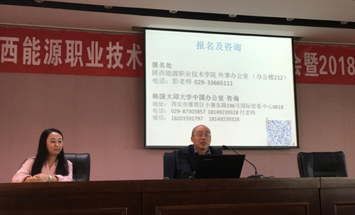 3月27日下午,韩国大邱大学康复医疗技术专场宣讲会在实训楼六楼报告厅举行,外事办主任任向明、韩国大邱大学中国办公室负责人付子健、医学院康复医疗技术专业学生参加宣讲会。