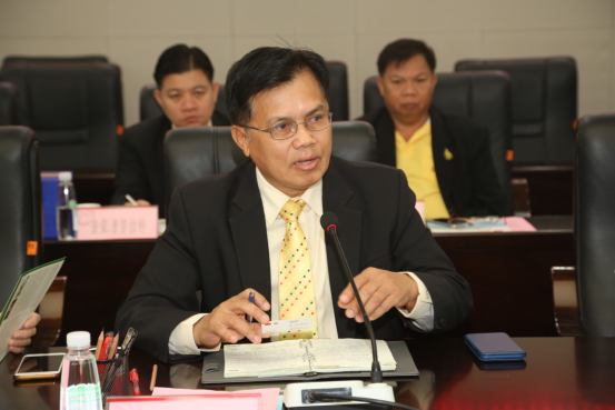 我校经济管理学院党总支书记李鲜玲、建筑工程学院副院长买中傲在会上分别介绍了学院的办学历史、办学特色、专业设置、实验实训建设、人才培养、对外合作等基本情况,拉差西塔兰技术学院院长Chatchai Punnurat、民武里技术学院院长Taweesak Kewthong、 切都蓬商业学院院长Attapon Phonprueksa、皇家制金学院院长Pornanan Pukdeeboon分别介绍了学院的办学历史、办学理念、办学层次、课程设置、对外合作等情况。