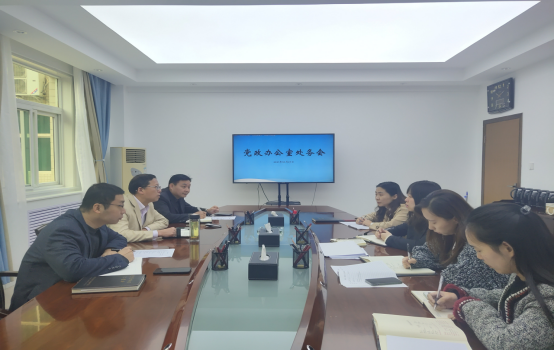 2021年10月27日(星期三),党政办公室处务会在办公楼第一会议室召开,党政办工作人员共9人参加会议,会议由党政办主任史君主持。