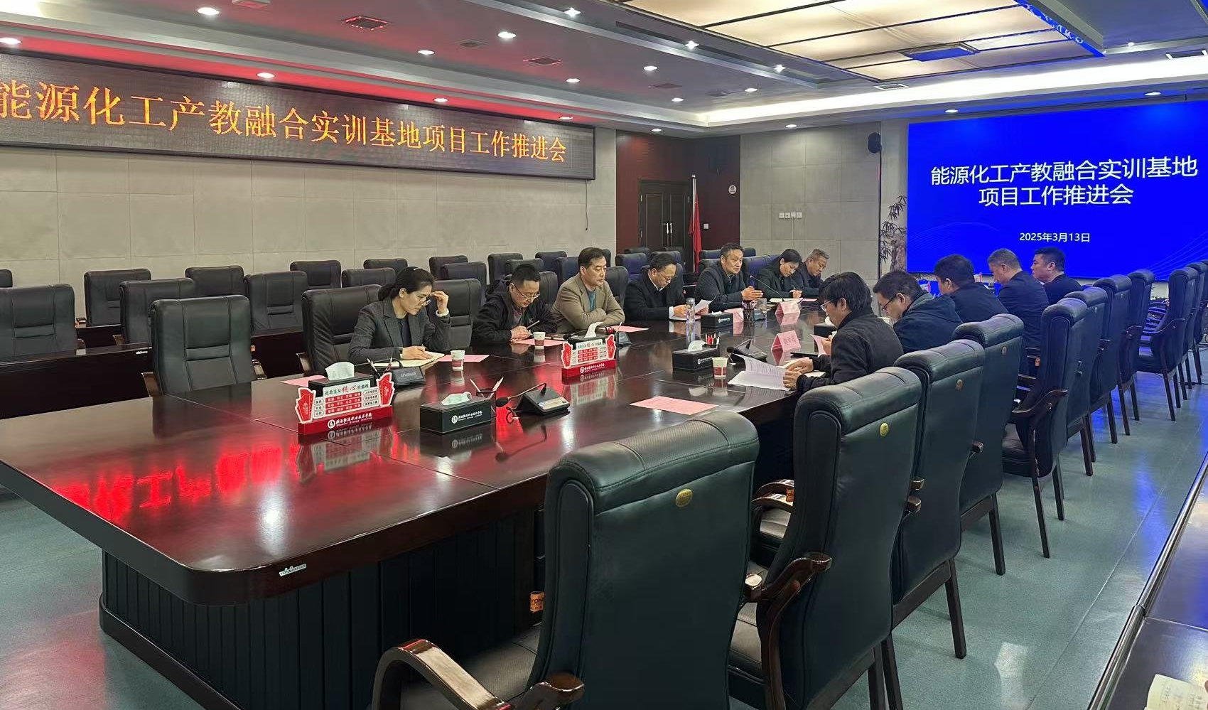 3月13日下午,学校在办公楼第三会议室召开能源化工产教融合实训基地项目工作推进会。学校党委副书记 校长朱忠军、纪委监督检查室、财务处、审计处等部门负责人、规划与基建处全体人员、项目施工单位中建七局第四建筑有限公司总经理莫江峰、监理单位陕西西冶项目管理投资咨询有限公司总经理赵文兵及项目负责人参加会议。会议由副校长刘浩主持。