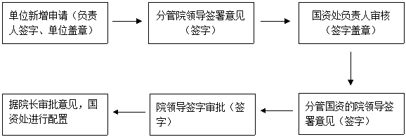 (一)需要新增办公设备、家具的单位,应在每年的上半年、下半年各一次提出书面申请,经单位领导签署意见并加盖单位公章,经分管院领导签署意见后交国资处。国资处将审核符合新增条件的申请按采购程序报院领导审批。
