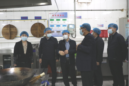 为深入贯彻落实生态环境保护要求,推动校园餐饮油烟污染治理工作取得实效。3月31日下午,咸阳市人大常委会副主任赵昌华一行来我校就食堂餐饮油烟净化设施运行及排放管理情况进行督察,渭城区区长张永强、副区长翟宁及相关部门负责同志陪同督察。我校党委副书记校长朱忠军及党政办、后勤保障处等部门负责同志陪同并现场汇报该项工作情况。