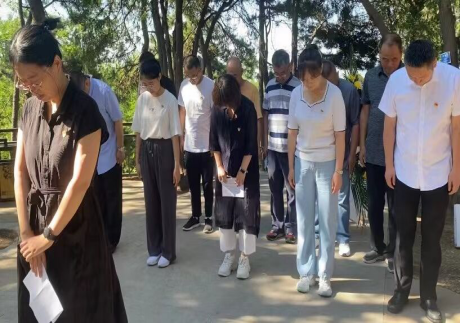 后勤党支部一行来到爷台山,瞻仰革命纪念碑,全体党员向革命烈士肃立、默哀。