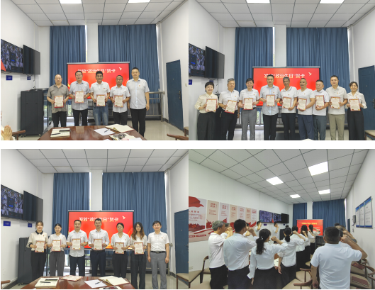 随后,支部为全体党员发放了精心制作的“政治生日卡”。在党支部书记的带领下,全体党员面向党旗,举起右拳,重温入党誓词。