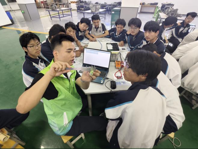 讲座中,团队教师通过互动问答、示范讲解等环节,引导学生结合具体案例剖析技术应用场景,深入理解新能源汽车电池技术的产业应用逻辑,现场学习氛围热烈。