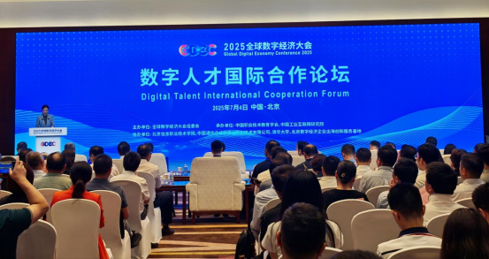 7月4日,由国务院批准、北京市人民政府等国家部委与联合国开发计划署共同主办的全球数字经济大会核心论坛——“数字人才国际合作论坛”在北京国家会议中心启幕。教育部原副部长、中国职业技术教育学会鲁昕,东南大学信息科学与工程学院院长、欧洲科学院院士王承祥,中国工业互联网研究院院长鲁春丛,联合国工业发展组织投资与技术促进办公室高级专家姜灏等出席本次论坛,我校党委副书记、校长朱忠军受邀参加,会议由中国职业技术教育学会副会长宋敏主持,大会旨在通过强化多边政策协同,创新跨国人才培养机制,搭建人才国际交流合作平台,构建开放、协同、包容的全球数字人才生态。