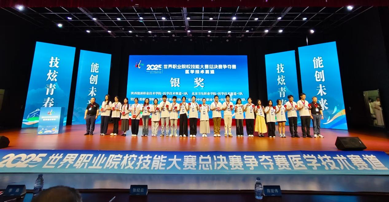 8月19日至22日,2025年世界职业院校技能大赛总决赛争夺赛高职组医学技术赛道比赛在信阳职业技术学院成功举办,本次大赛吸引了来自全国各地的178支代表队,共计1300余名选手同台竞技。由医学技术学院副院长李蕊带队,指导教师李欢、李昕以及崔跃、杨乾仁、马慧霞、张钰洁四名同学组成的我校代表队,凭借精湛的技术和出色的现场表现,最终荣获银奖。
