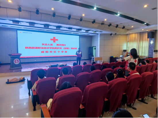 本次培训由咸阳市红十字会协调安排,晁明柱等3位老师担任培训任务。培训内容主要包括:“心肺复苏”、“AED的使用”、“创伤救护”“常见急症处理”等。通过理论+实操的授课方式,经过理论测试和实践考核合格者发放“红十字初级救护员证”。