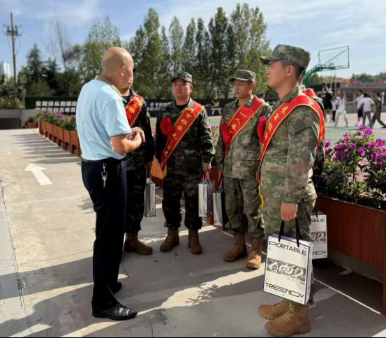 训练基地内,应征入伍的新兵们身着崭新迷彩服,以挺拔的身姿、饱满的精神面貌迎接学校老师们的到来,展现出良好的训练成果和昂扬的精神风貌。