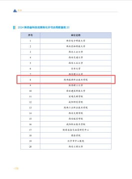 近年来,学校深入推进秦创原创新驱动平台战略,积极贯彻陕西省“三项改革”政策措施,鼓励师生深入行业企业,开展技术开发、技术攻关、技术服务、技术转化,印发《知识产权成果校企联合申报与转化专项工作方案》,释放科技成果潜力,印发《职务科技成果单列管理办法》,不断扩展技术转移转化新形式,作为省内高职院校率先在国家知识产权运营平台发布高质量开放许可专利20余件,达成专利许可16件,陕西省2024年科技成果许可合同排名全省高校第8名,取得显著成效。