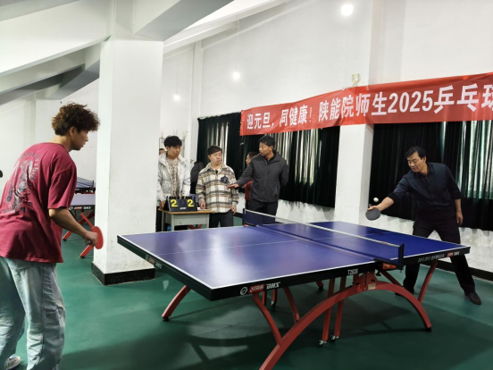 12月24日,由校工会主办、教职工乒乓球协会与学生乒乓球队承办、体育部协办的“迎元旦·同健康”师生乒乓球团体友谊赛在咸阳、临潼两校区同步挥拍。来自协会的16名教师运动员和来自乒乓球队的16名学生运动员隔网相对,展开混双、女单、男单、女双、男双5个项目的角逐,为迎接2026新年献上了一场充满活力的比赛。
