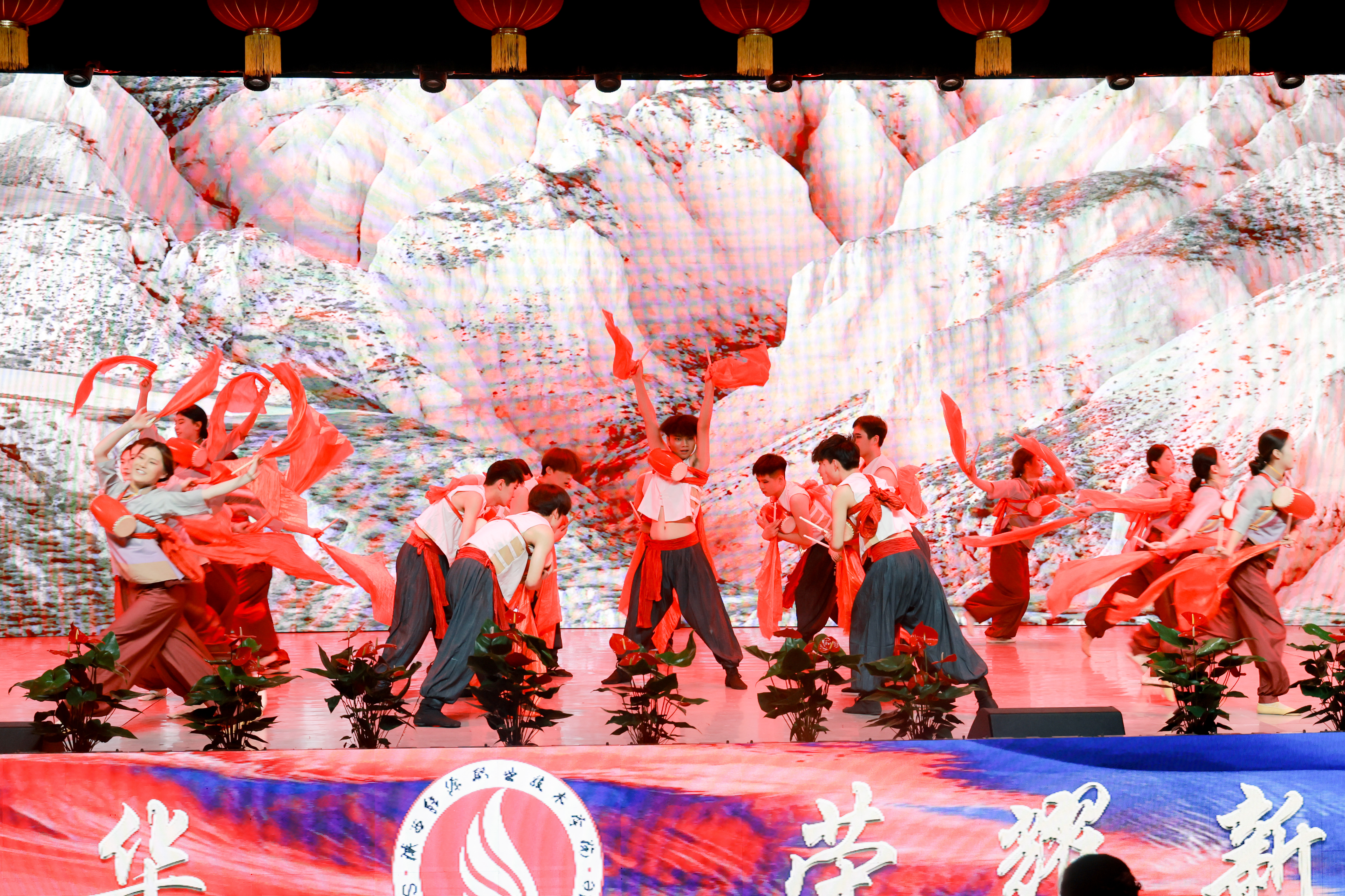 第二篇章“薪火赓续・忆峥嵘”中,红色情怀与传统韵味交织生辉。舞蹈《映山红》,用优美的肢体语言勾勒出革命岁月的峥嵘记忆,唤起了全场观众心底的红色共鸣;随后的颁奖在热烈的氛围中开展,教师代表为优秀学子颁发了国家奖学金、励志奖学金及筑梦奖学金,以荣耀铭记勤学,用褒奖激励成长;快板《玲珑宝塔》节奏明快,层层递进的叙事与清脆利落的板点相得益彰,生动展现了传统曲艺的语言魅力与表演张力;本次晚会还特邀咸阳师范学院带来了独唱《月下独酌》,将古典诗词的意境与声乐艺术完美融合,尽显传统文化的博大精深;接下来,太阳石奖学金系列奖项——敬学奖、明德奖、远志奖逐一颁发,以学术的名义,致敬品学兼优、全面发展的卓越青年;篇章终以舞蹈《黄土黄》作结,陕北风情的舞姿展现了黄土高原的豪迈与坚韧,仿佛将观众带入苍茫高原,深切感受到三秦大地深沉的文化根脉与精神力量。