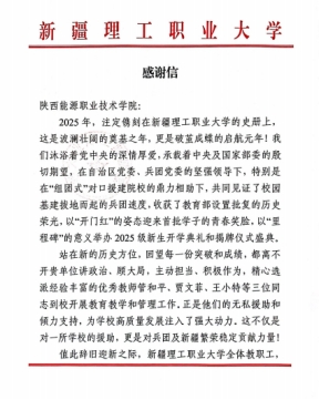 近日,我校收到新疆理工职业大学发来的感谢信,信中对我校对口援建工作表达了诚挚谢意,见证了两校在“组团式”教育援疆中结下的深厚情谊。