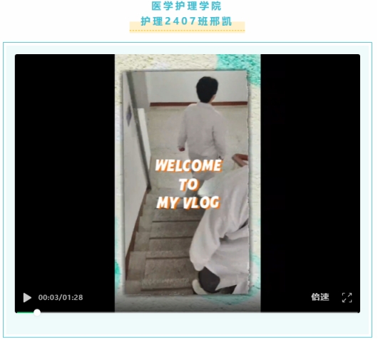 在众多作品中,豆诗涵的参赛视频突破传统校园Vlog叙事框架,凭借新颖的镜头语言、富有巧思的转场剪辑与清晰流畅的内容结构,将校园日常与特色美食巧妙串联,充分展现了出色的新媒体创作能力与创新思维,为观众呈现了一场兼具视觉与听觉的精彩体验。刘佳的作品则以细腻温情的镜头,讲述了自己专注学业、勇攀知识高峰,同时利用课余时间投身戏剧社(DRAMA CLUB)的青春历程。作品叙事节奏张弛有度,情感表达真挚动人,于平凡的校园生活中挖掘出温暖深刻的成长力量,让观众在短短数分钟内,真切感受到医学生坚守初心、向阳而行的精神风貌,故事完整性与情感感染力俱佳。
