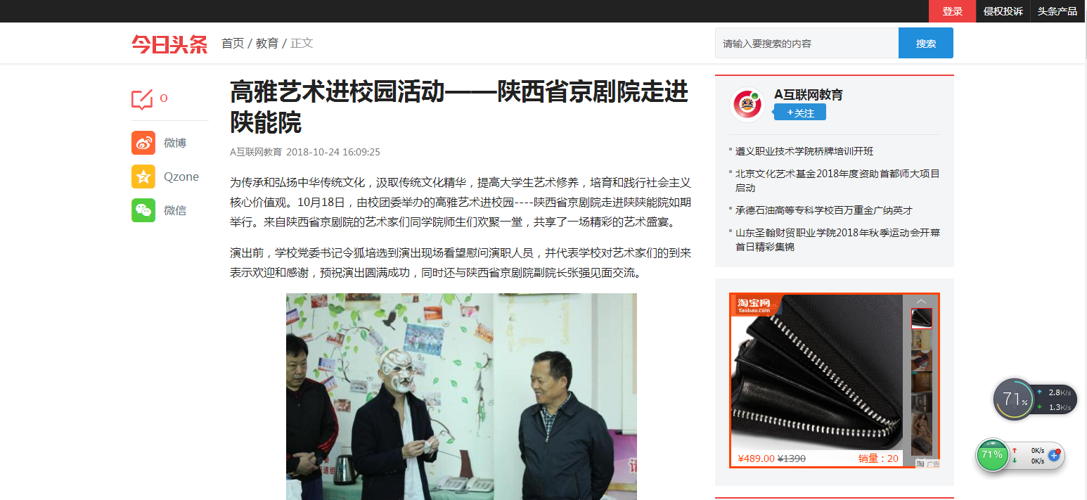 今日头条:高雅艺术进校园活动——陕西省京剧院走进陕能院