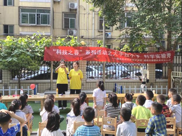 5月7日上午,人文与教育学院科普队走进咸阳秦都区美育幼儿园开展“科技之春”活动之“大手拉小手 科学实验秀”活动。