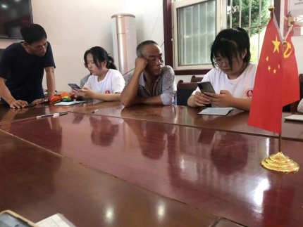 在庄子塬村,同学们帮助村民下载安装软件,并指导村民学习采集信息。