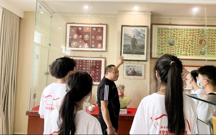 随后,队员们来到了毛主席像章展厅,由毛主席纪念章收藏者马利春老师向同学们介绍了陈列的各种展品。马老师详细为队员们介绍了朝鲜战争时人民子弟兵所用的生活用品,毛主席前往安源的经历,展厅中毛主席像章的由来和毛主席人像陶瓷品。数量巨多的藏品让队员们震撼不已,也从藏品的背后看到了当今幸福生活的来之不易。