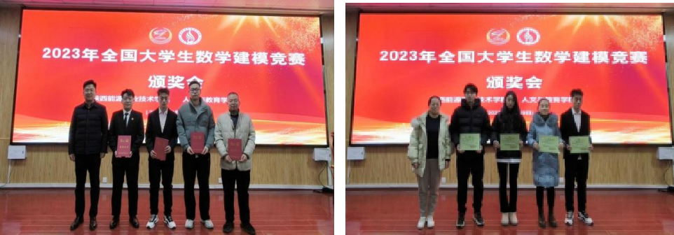 12月29日下午,我院在我校文林大讲堂举办了“2023年全国大学生数学建模竞赛颁奖会”。我校副校长罗继军、实践教学中心处长陶燕、我院党总支书记买中傲、副院长王利荣、综合办主任韩剑、数理教研室全体指导教师、2023年获奖学生出席了颁奖会。会议由数理教研室主任孙爱民老师主持。