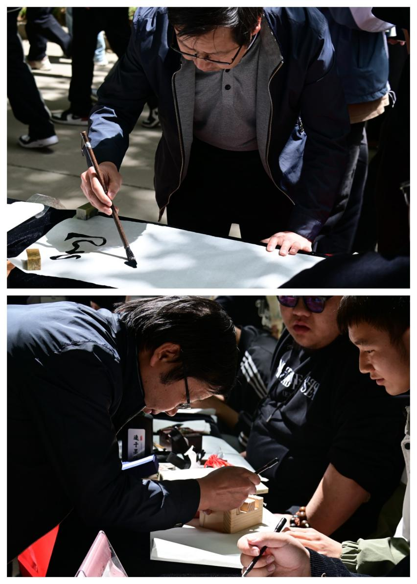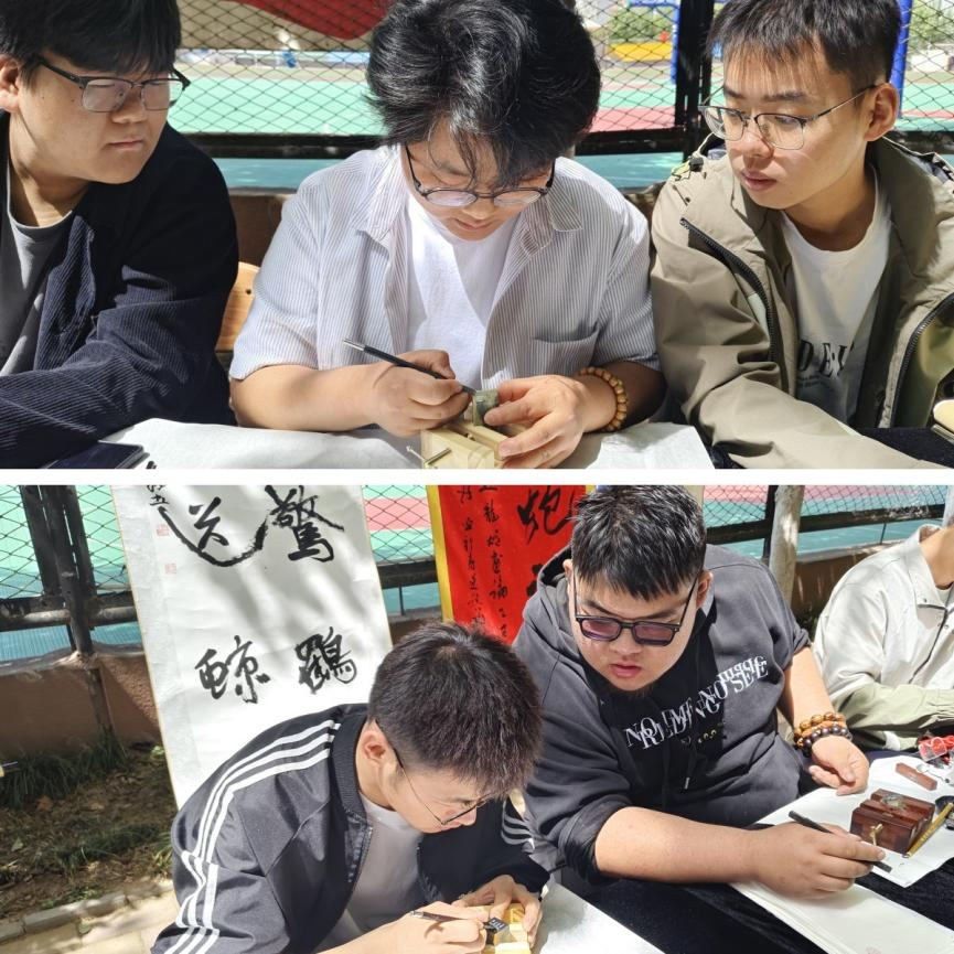 活动伊始,李浩森同学详细阐述了书法和篆刻的起源、发展历程以及其在中华文化中的重要地位。随后,现场展示了书法创作和篆刻刀法技巧,一笔一划,刚柔并济,一刀一凿,力透石背,大家认真聆听,仔细观察,纷纷被书法篆刻艺术的精妙所折服。