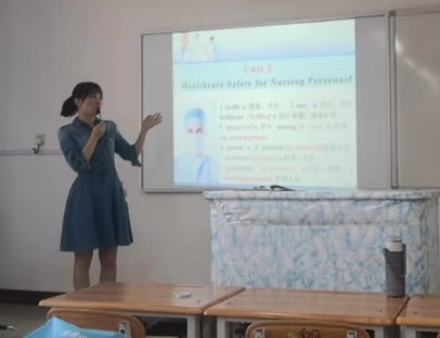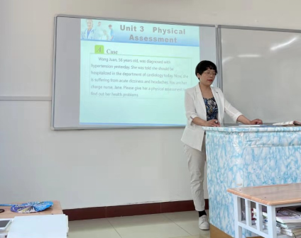 李妍老师示范讲解了Physical Assessment一节内容,不仅让学生了解了高血压等慢性病及其预防知识,而且通过生动鲜活的实例,让学生懂得了“国家强,民族强,人民就更幸福更健康”的道理。