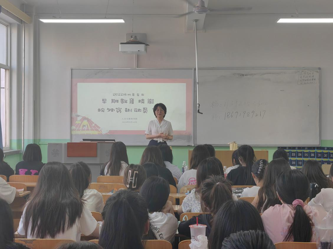 为提高学生的专业实践能力,顺利推进实习实训工作,5月14日下午,2022级婴幼儿托育服务与管理专业早期教育技能校外实训动员会在教学楼709教室召开。人文与教育学院副院长王利荣、实训带队教师及托育2022级全体学生参加本次会议。