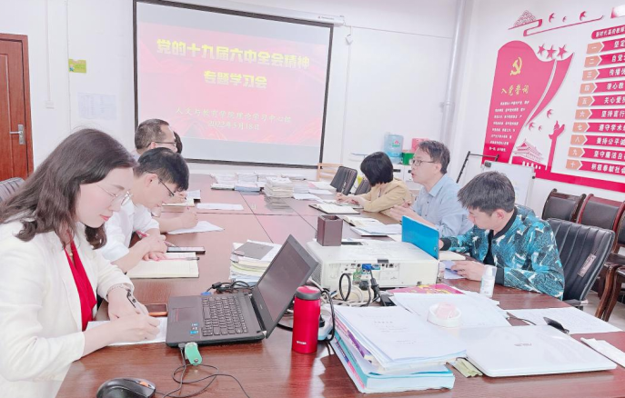 随后,师培杰强调,要把深入贯彻落实党的十九届六中全会精神作为重大政治任务,坚持以习近平新时代中国特色社会主义思想为指导,增强“四个意识”、坚定“四个自信”、做到“两个维护”,以史为鉴、开创未来,埋头苦干、勇毅前行,扎扎实实做好人文学院各项工作。
