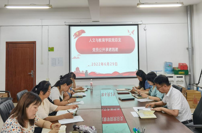 6月29日下午,我院党总支组织全体党员在办公楼508会议室召开了党员承诺践诺会议,学院临潼校区的党员以线上的方式参加了会议。