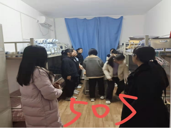 会后,在师书记、学工办主任杜康的带领下,辅导员、班主任分别对5#、4#及6#男女生公寓楼进行了检查。