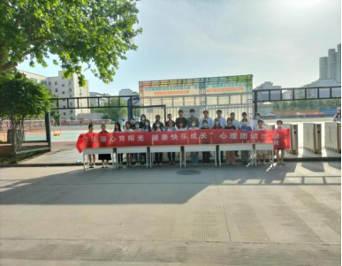 5月19日下午,37名学生在操场上开展“沐浴心育阳光 健康快乐成长”心理团辅活动。