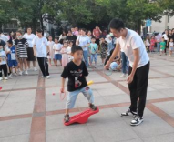 在亲子运动会中,实践团设置了踩纸前行、头运篮球等设置简单易行且趣味十足的亲子挑战项目,家长和孩子们共同参与、相互协作、默契配合,闯过一关又一关。