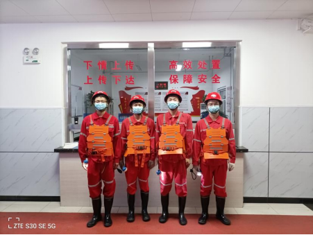 根据活动安排,实践团机电专业小分队进入矿井一线工作面进行学习。入井前,矿方指导老师徐曦对实践团成员进行了安全培训,成员们按要求更换了工作服、佩戴了安全帽、胶靴、矿灯、自救器等装备。在井口安全确认后由徐曦老师的带领下乘坐罐笼式提升机进入到深500米的井下,参观了永久避难硐室、中央变电所、中央水泵房、超磁水处理硐室等地方。