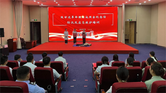 近期我省进入多雨时段,降雨过程持续时间长、影响范围广、累计雨量大、防汛形势严峻复杂。为做好防汛安全教育、普及常见应急救护培训基本知识,增强安全防范意识。7月23日下午,陕西能源职业技术学院“能院星火”暑期社会实践团在陕甘边革命根据地照金纪念馆开展防汛及应急救护培训。纪念馆馆务委员、工会主席、保卫科科长王忠雷携纪念馆全体工作人员参加培训。