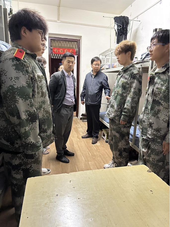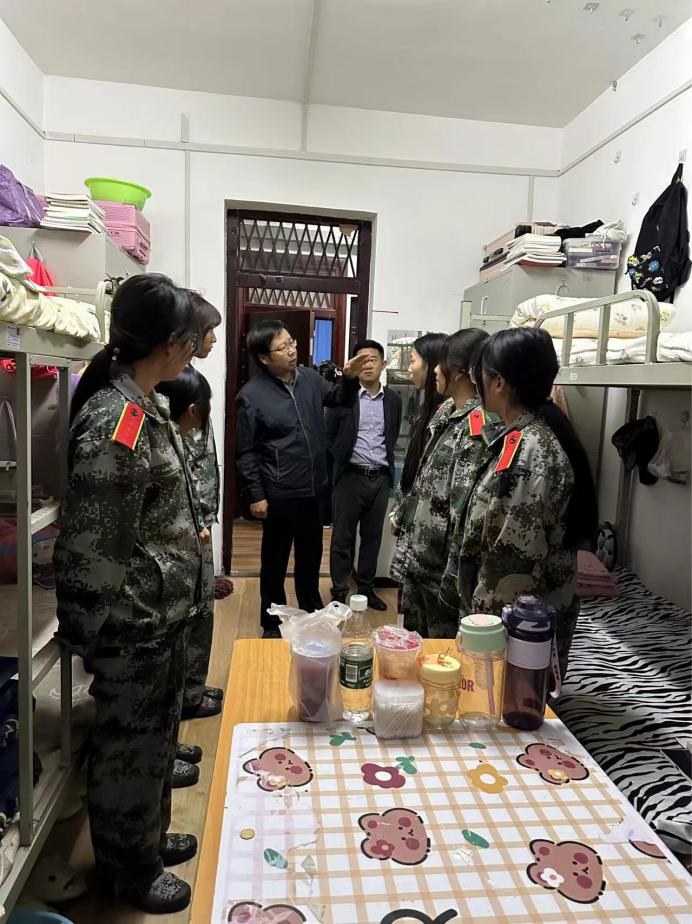 党总支书记买中傲首先关心了新生们军训期间的训练和生活情况,军训虽然很累,但是努力的样子很美。慰问过程中对宿舍内务进行了检查,买中傲书记对学生表示:内务整理不仅关系到学生们的居住环境,更体现了他们的纪律观念和自我管理能力。他鼓励学生们要珍惜军训期间的宝贵时光,严格按照教官的要求整理内务,努力提升自己的综合素质。