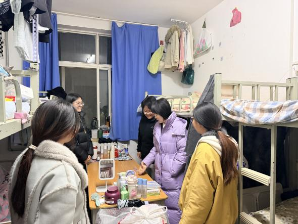 在走访过程中,党总支书记买中傲仔细询问同学们的假期生活、返校适应情况以及新学期的学习计划,耐心倾听同学们在生活和学习中遇到的困难,并给予贴心的建议和帮助。同时老师们还特别关注宿舍的安全与卫生,提醒同学们注意用电安全,保持寝室整洁,营造良好的生活环境。