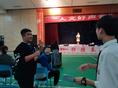 比赛中还穿插进行了学生手册中的知识问答,主持人与观众幽默互动,赠送礼物,增加了大赛的趣味性,让现场的同学们既享受到听觉盛宴又对学校的相关制度有了更深的了解。
