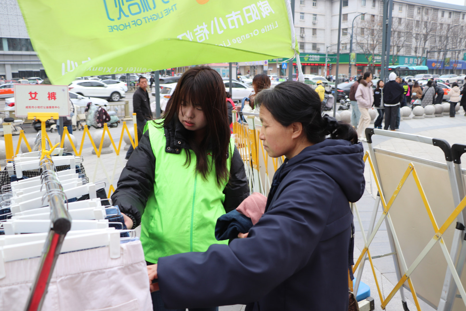 2026年3月8日下午,咸阳市小桔灯公益服务中心在秦都万达广场开展“暖心衣橱”第332次自选捐赠活动,我院团委组织15名志愿者积极参与,用青春行动传递温暖正能量。