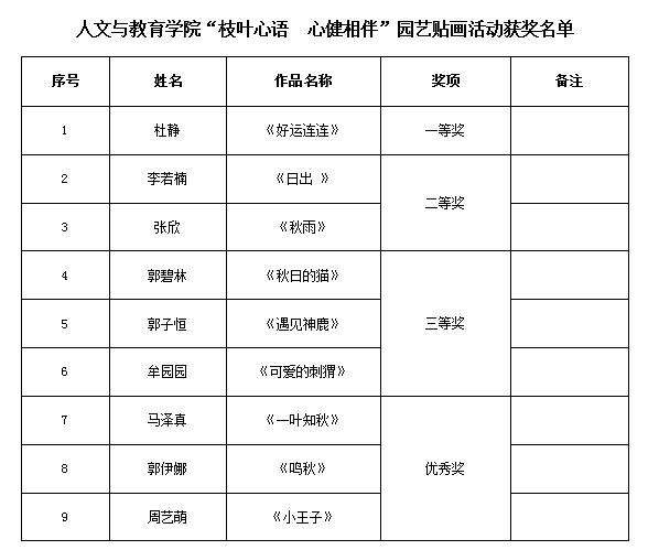 为充分发挥网络心理健康教育阵地作用,多角度提升我院学生的心理健康意识,丰富同学们的校园生活,引导同学们从艺术欣赏与美感体验中培育积极阳光的心理品质。我院于11月3日开展了“枝叶心语 心健相伴”园艺贴画征集展示活动。