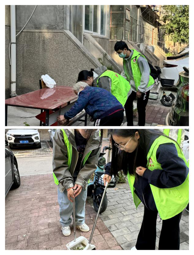 活动中所有志愿者来到指定地点,志愿者们来到老年活动中心,为老人们放松肩膀,并和他们聊天。在活动过程中碰到一个老奶奶在垃圾桶旁边收拾纸箱子和瓶子,志愿者们上前帮助她整理纸箱子。在家属楼内帮行动不方便的老奶奶清理草丛卫生,并帮整理物品。