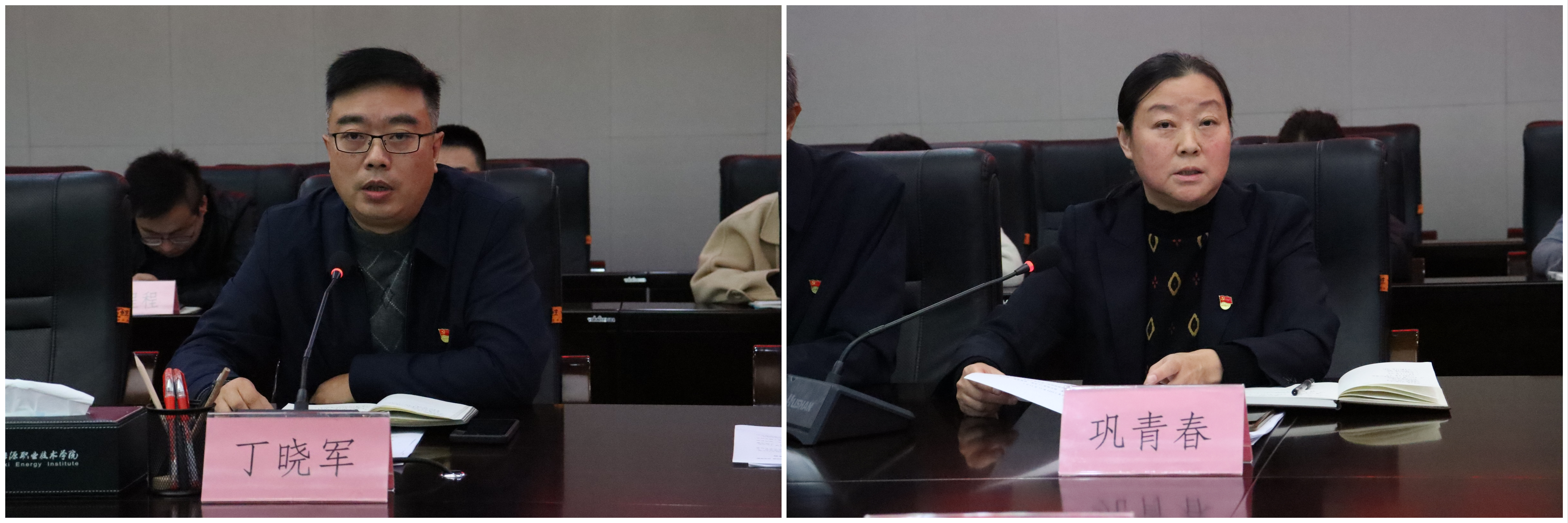 随后,校党委委员、组织部部长、第一巡察组组长丁晓军,校党委委员、宣传部部长、第二巡察组组长巩青春分别作表态发言。被巡察党总支护理学院党总支书记房朋、智能制造与信息工程学院党总支副书记冯帅分别作表态发言。