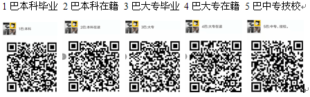 1、按个人学历学籍类别加入微信群(7个微信群:1巴本科毕业、2巴本科在籍、3巴大专毕业、4巴大专在籍、5巴中专技校毕业、6巴大专毕业、7巴大专毕业),入群需实名,并备注常用手机号,进错群请务必自动退群并进正确的群。为方便通知,入群后不要在群内说话,也不要在群内发布任何形式的内容。群二维码见下图,请扫码入群。