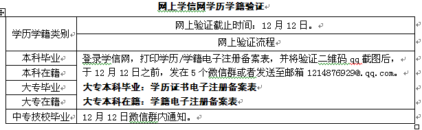 2、学员先进行网上学信网(www.chsi.com.cn)学历学籍验证,截止时间2018年12月12日,具体网上验证流程: