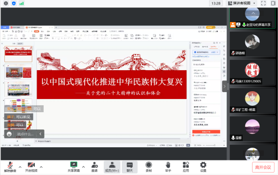12月13日晚至12月14日早,我校继续教育学院党总支书记赵亚玲面向彬长公司“学历+技能”双提升学员,用“以中国式现代化推进中华民族伟大复兴”为主题开展线上讲座,宣贯党的二十大精神。12月9日晚至12月10日早,赵亚玲面向来自巴拉素煤业、彬长公司等企业的成人学历教育学员,开设“学习党的二十大精神”专题线上讲座。这两次线上讲座,针对学员在岗上班的客观情况,分别在晚上19点至22点、早上8点30分至11点30分授课,由学员根据上班情况自行2选1听讲,共计772人参加了线上讲座。