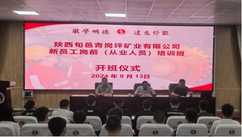 9月13日上午,2024年陕西旬邑青岗坪矿业有限公司新员工岗前(从业人员取证)培训开班仪式在陕西能源职业技术学院举行。陕西能源职业技术学院继续教育学院院长刘金娃,陕西旬邑青岗坪矿业有限公司人力资源部部长魏国龙出席仪式,开班仪式由继续教育学院综合管理中心主任张继军主持,18名新招录员工参加培训学习。