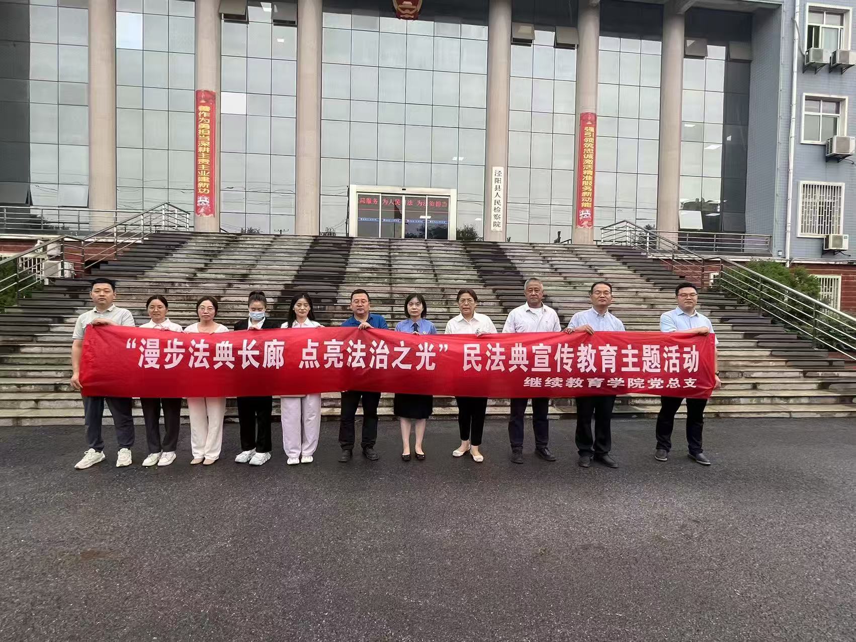 为深入贯彻落实法治思想,切实提升全体党员法治素养,5月30日,继续教育学院党总支组织全体党员前往泾阳县人民检察院,成功开展了“漫步法典长廊,点亮法治之光”民法典宣传教育主题活动。党总支书记赵亚玲、院长刘金娃同志及全体党员全程参与活动。