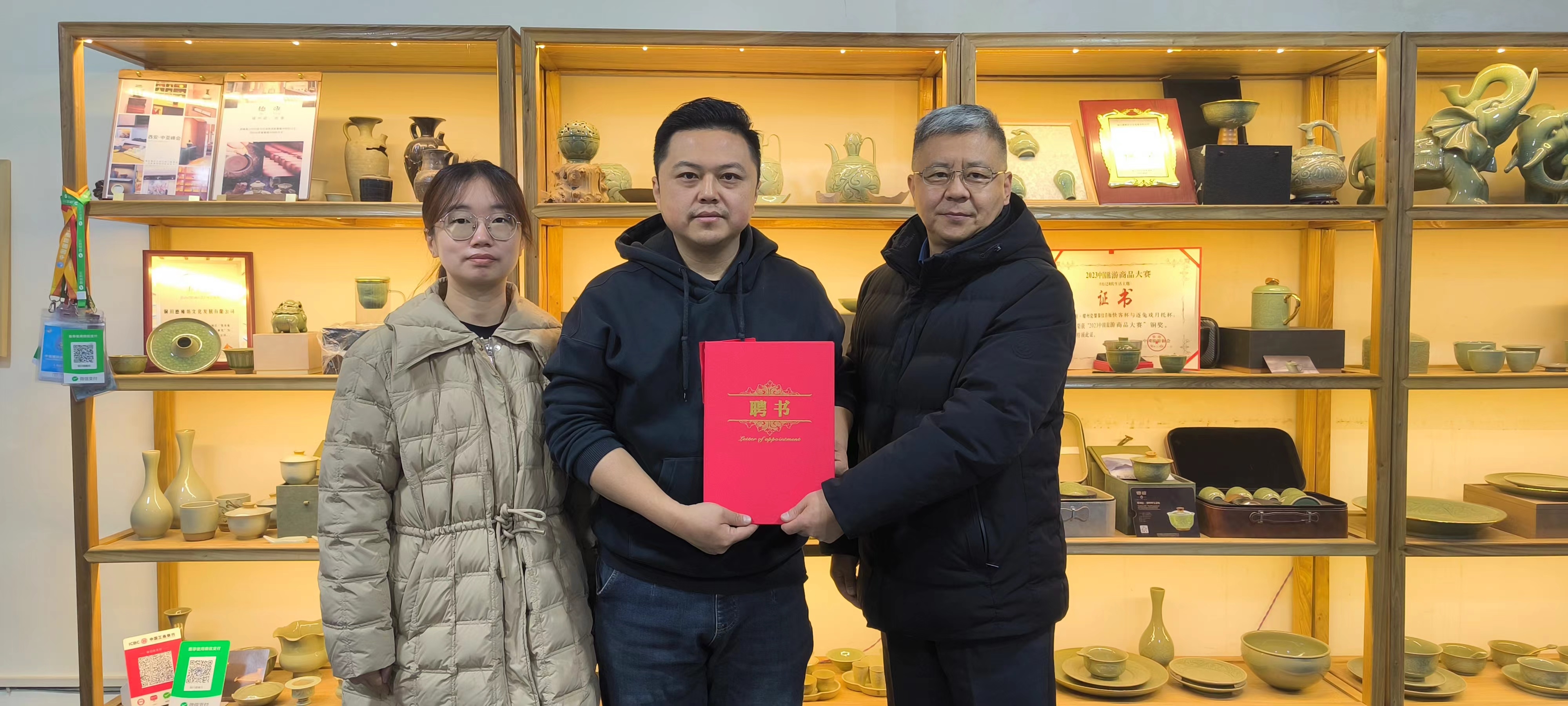 2023年12月1日,建筑与测绘工程学院党总支书记肖明宇与建筑艺术教研室主任李珊、骨干教师吕彬一行前往耀州瓷博物馆为耀州窑博物馆名誉馆长禚振西先生、铜川德雍坊文化发展有限公司创始人言实老师颁发建筑室内设计专业客座教授、技能大师证书。