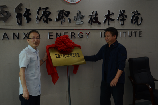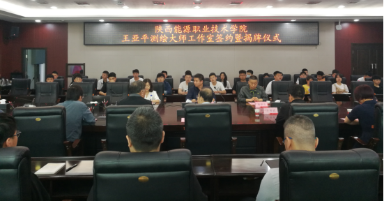 李耀辉代表学校与王亚平签订“测绘大师工作室”协议,并向王亚平颁发陕西能源职业技术学院测绘类专业技能大师聘书。李耀辉与李俊为王亚平测绘大师工作室揭牌。