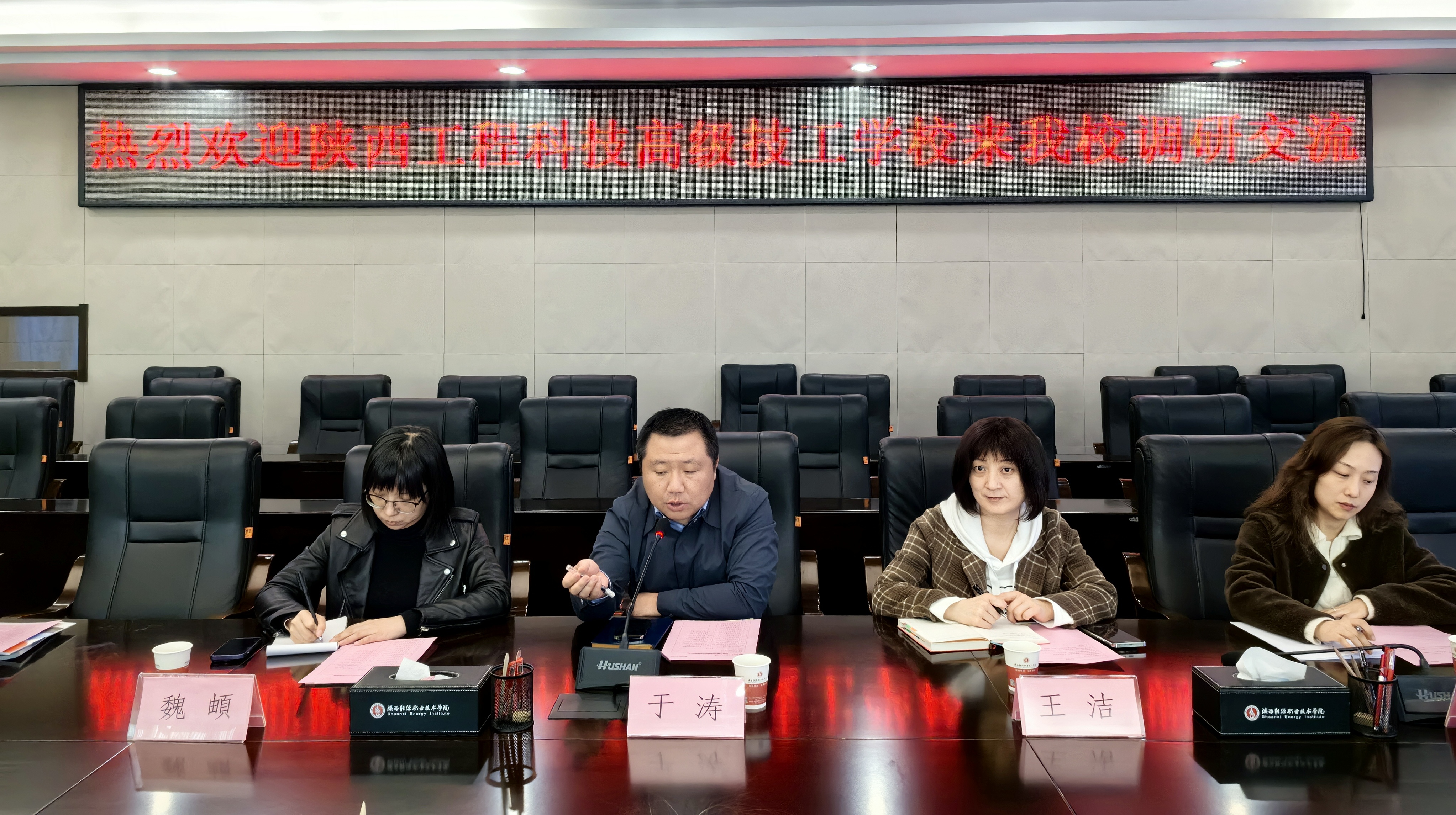为了进一步提升学校的人才培养水平,加强中高职之间的交流与合作。3月21日,陕西工程科技高级技工学校来建筑与测绘工程学院调研交流,会议由院长王洁主持,邀请我校招生就业处(校企合作处)处长于涛、经济管理学院、煤炭与化工产业学院相关教研室主任及专业骨干教师参会。