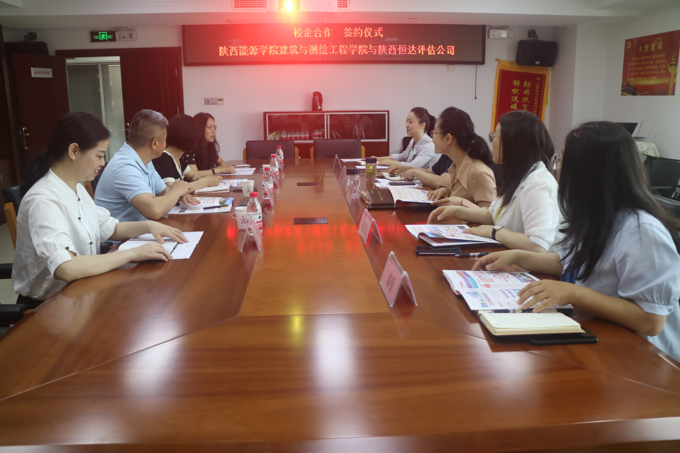 陕西恒达土地房地产评估咨询有限公司法定代表人、董事长申雅蓉对肖明宇书记一行表示热烈欢迎,总经理朱领辉详细介绍了公司的业务范围、发展战略,以及在人才培养和引进方面的重视。肖明宇书记、王洁院长也介绍了陕西能源职业技术学院的基本情况和建筑与测绘工程学院的专业设置、校企合作人才培养等问题。