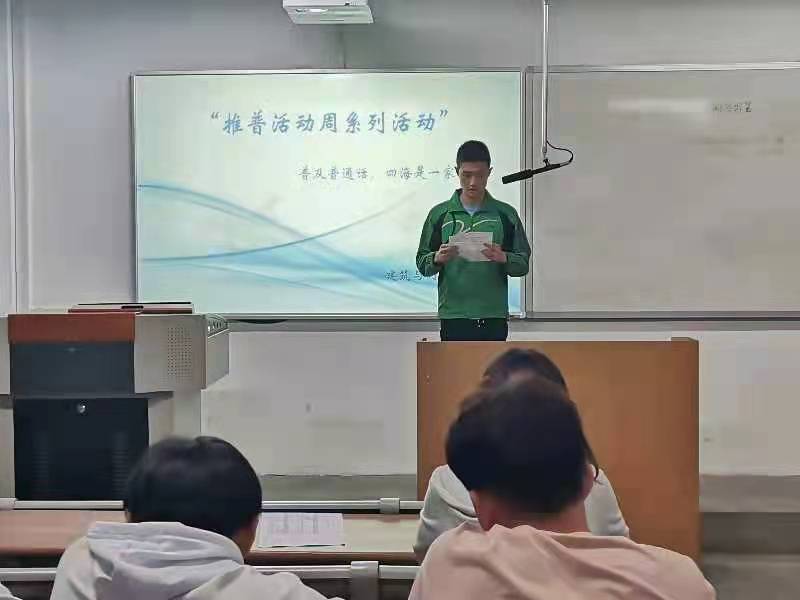 本次比赛旨在考察普通话的规范熟练运用。参赛选手全身心投入比赛,轮番上台进行朗诵,大家用真挚饱满的感情和标准的普通话,展示着同学们积极向上的精神风貌,表达了对党和国家的热爱。朗诵声声声入耳,或铿锵有力,或悠扬婉转,赢得了阵阵掌声。造价2101班的吴鑫彧、李瀚林、石文康、汪敏同学带来了朗诵《南湖的画舫》,表达了对党的热爱与赞颂;造价2001班翟松硕同学朗诵了《沁园春·雪》赢得了在场热烈的掌声。